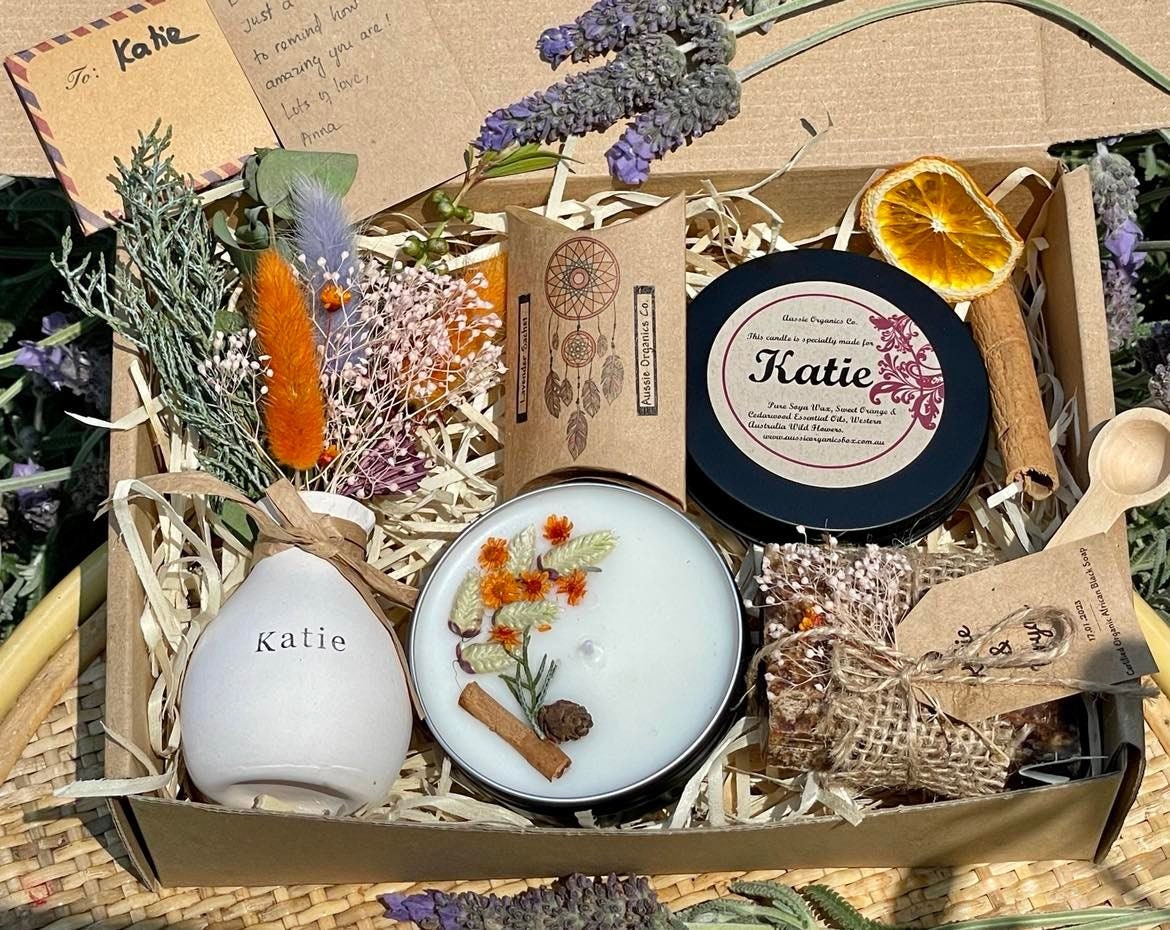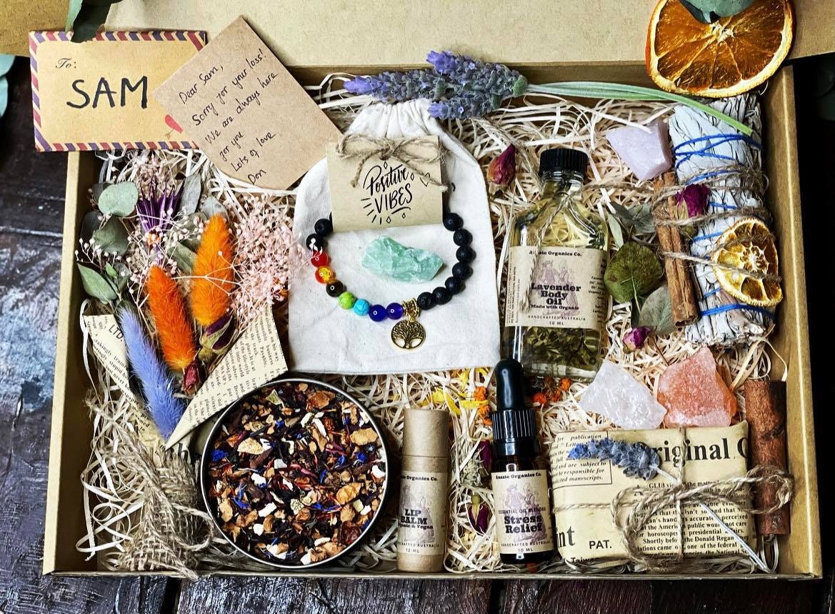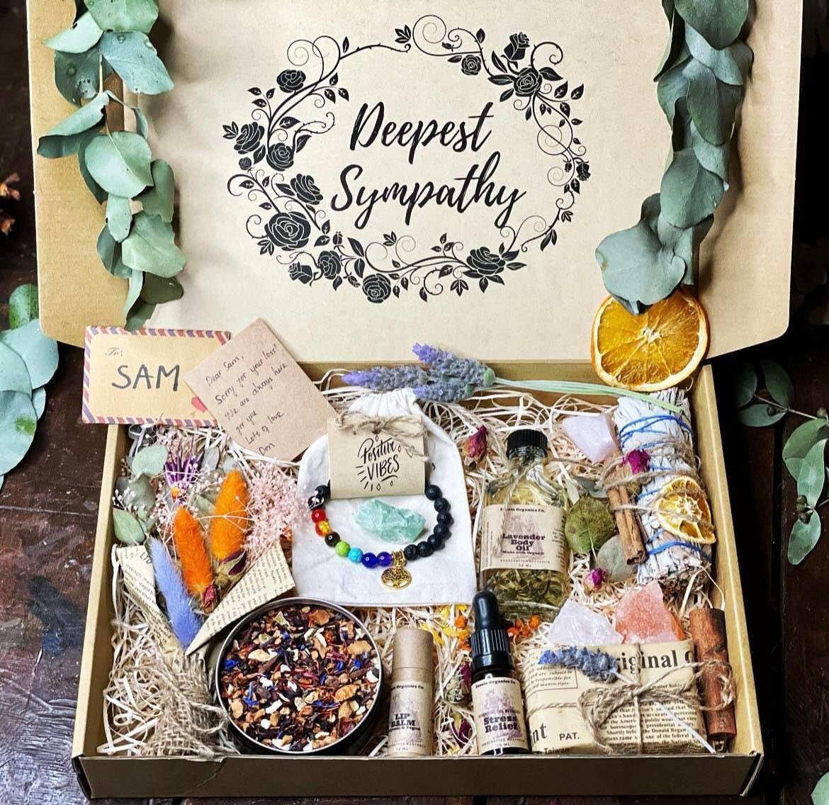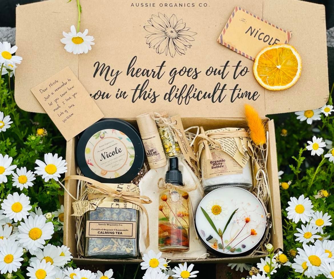 Personalised sympathy gift box with 100% natural, organic, plant based ingredients, plastic- free & zero- waste